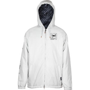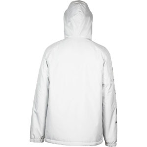 Zu den Details gehören ein Belüftungsschlitz mit Netzstoff, eine große Napoleon-Tasche, Handgamaschen, Ventilationszonen im Achselbereich, ein abnehmbarer Schneefang, asymmetrische Bündchen mit Klettverschluss, eine Funkgerät-/Schlüsselkartentasche und eine wetterfeste, einhändig regulierbare Kapuze, die leicht mit einem Helm kombinierbar ist.